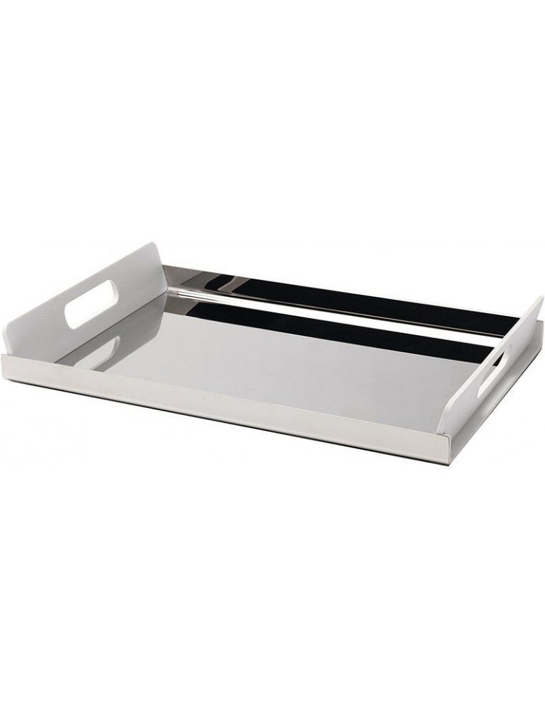 Vassoio rettangolare in acciaio inossidabile 18/10 con manici in resina termoplastica.