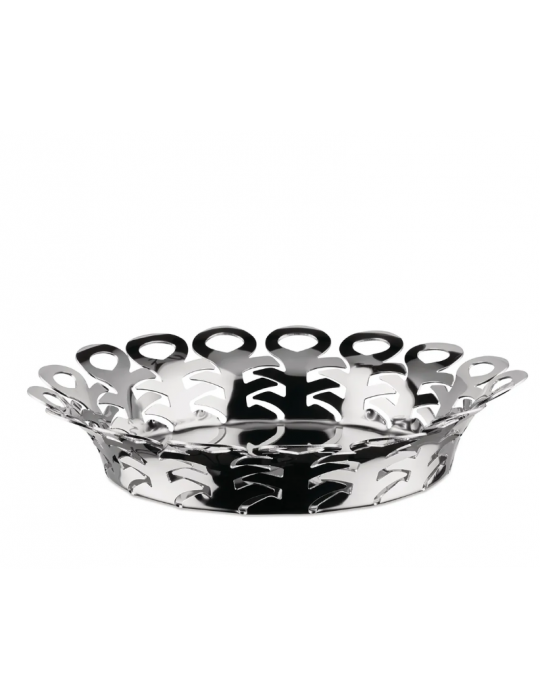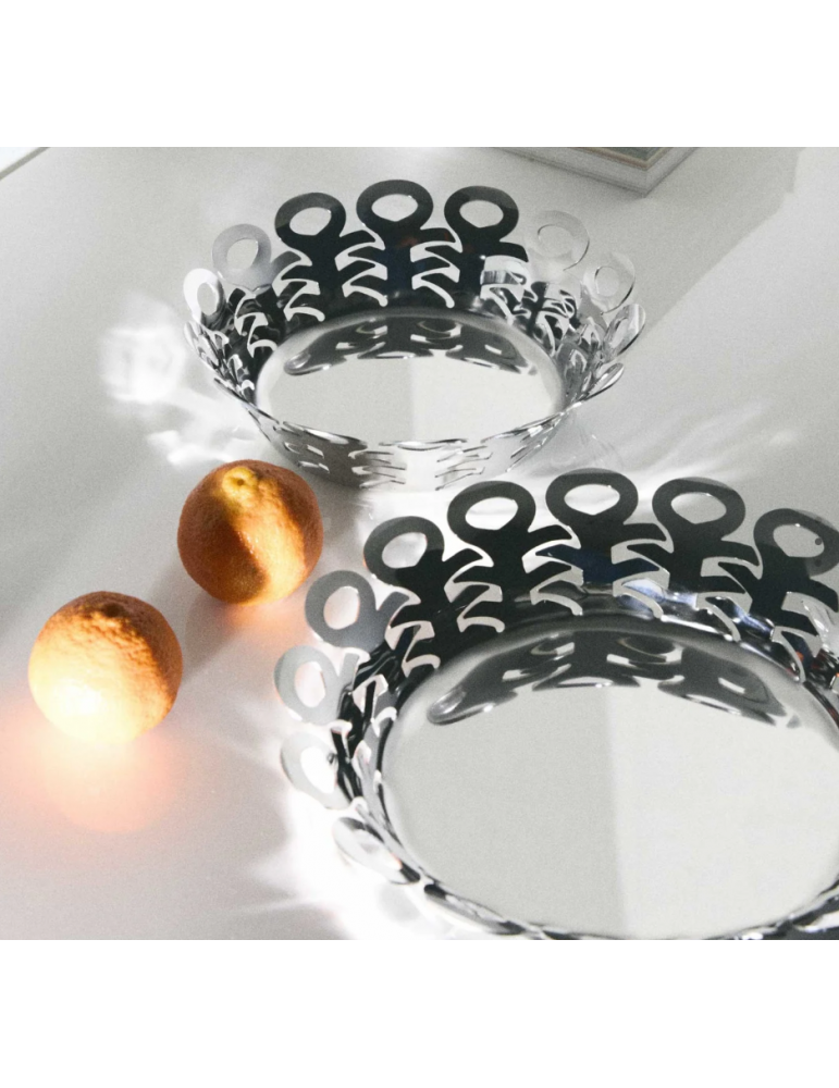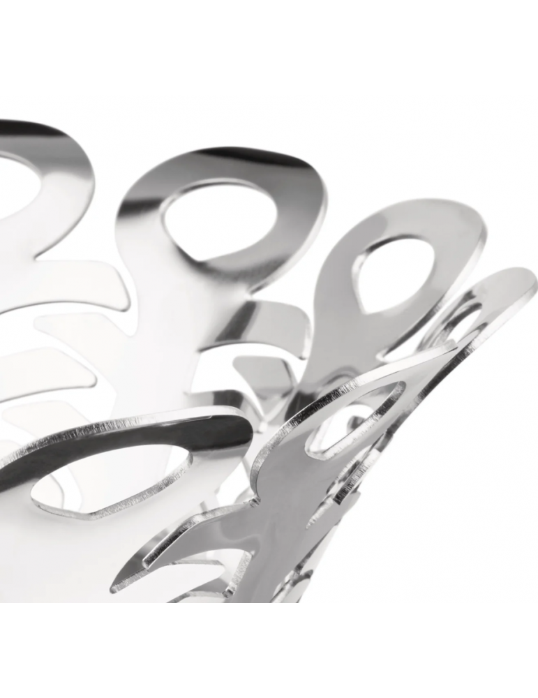 Il cestino Vimini si distingue per il suo design sofisticato: dopo essere stata tagliata con il laser, la lamiera di acciaio viene modellata in una serie di fasi di produzione meccanica che si affidano ancora una volta all'abilità dei laboratori Alessi nella lavorazione del metallo.