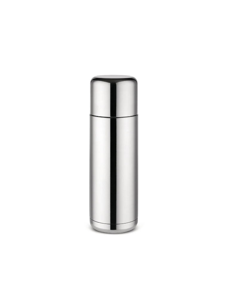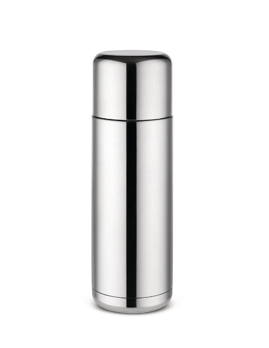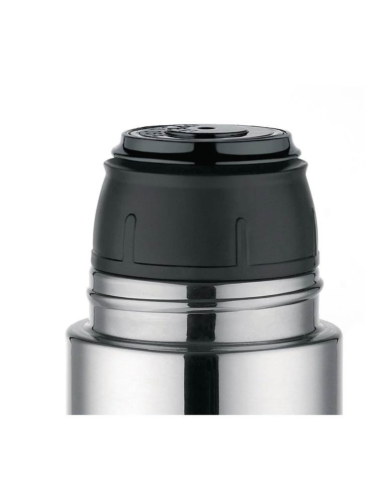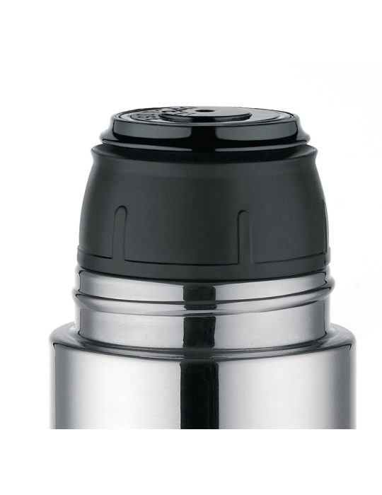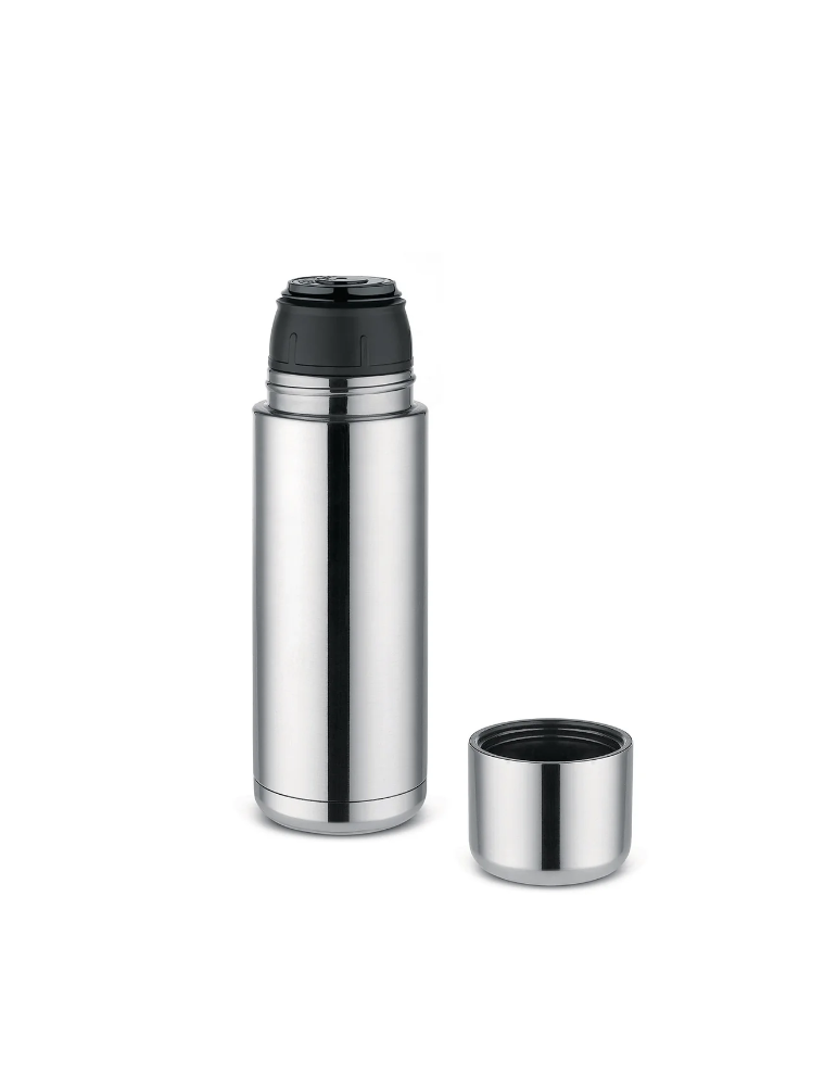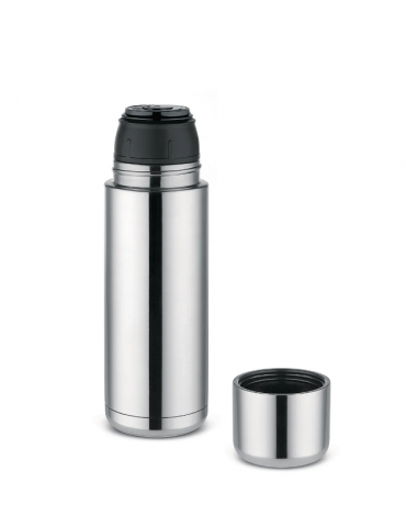 Borraccia termica a doppia parete in acciaio inossidabile 18/10 e resina termoplastica.