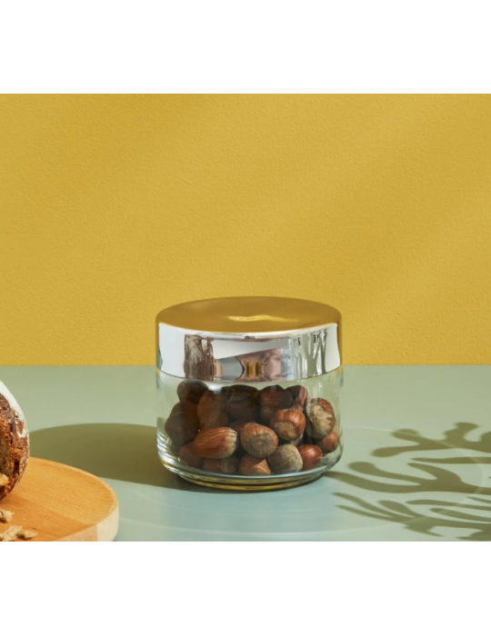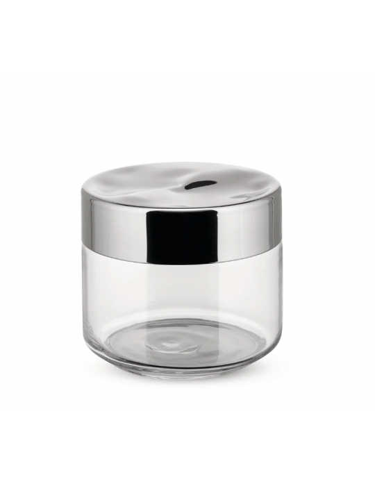 In questo oggetto il tratto di ambivalenza, caro al designer Lluis Clotet, è dato dal rapporto tra il vetro liscio e il coperchio deformato.