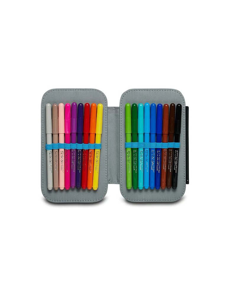 Lo puoi montare e smontare a tuo piacere. Infatti, all’interno, ha plance con elastici porta penne e matite, che puoi rimuovere del tutto, permettendo in questo modo il lavaggio dell’astuccio.