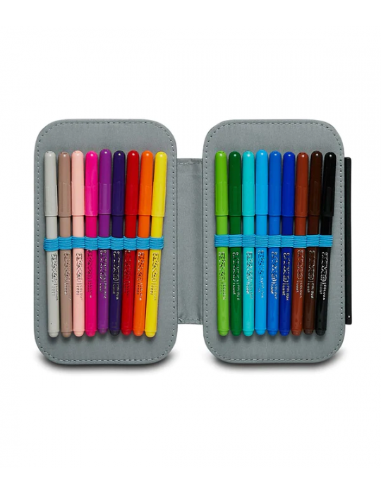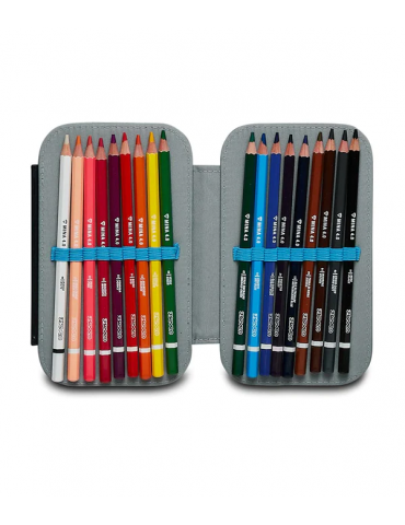 - Altre Caratteristiche: Apertura singola, plance amovibili ed elastici interni per cancelleria. CONTENUTO 44 PEZZI: 18 Pastelli a colori mina 4.0 Seven, 18 Pennarelli lavabili Seven, 1 Penna cancellabile blu, 1 Penna cancellabile rossa, 1 Matita grafite, 1 Gomma, 1 Temperino barilotto a 2 fori, 1 Colla stick, 1 Righello trasparente, 1 Forbice in metallo con maniglia in plastica.