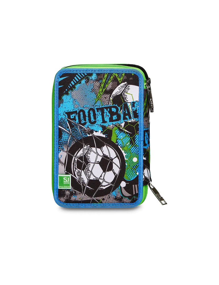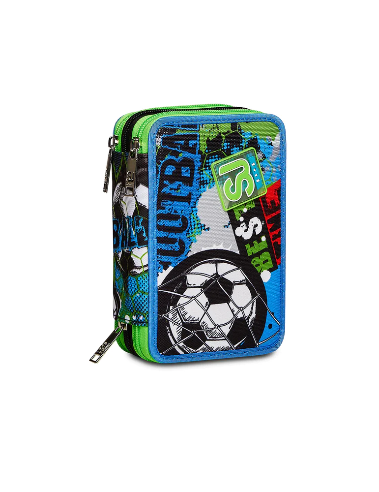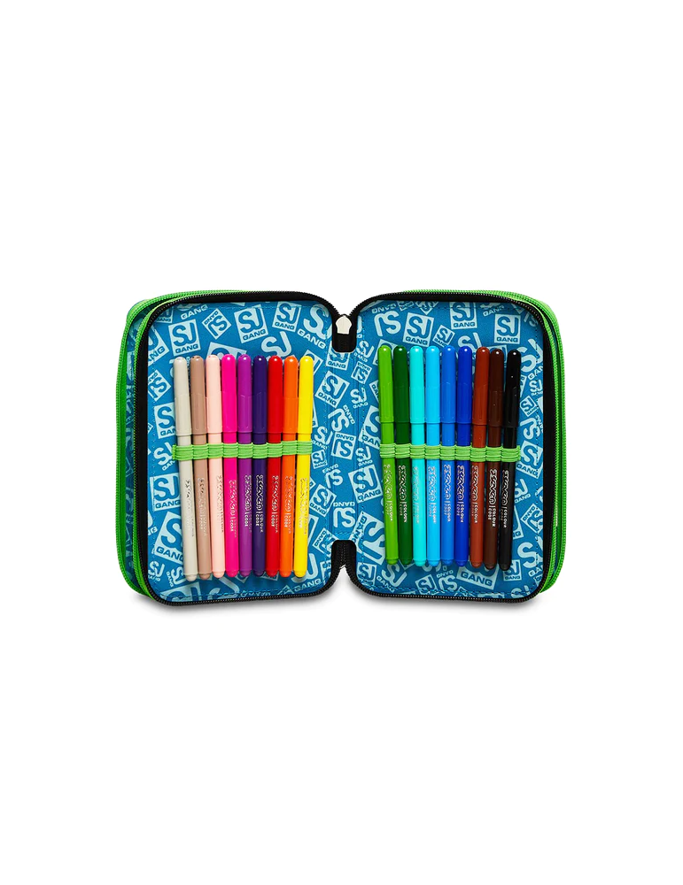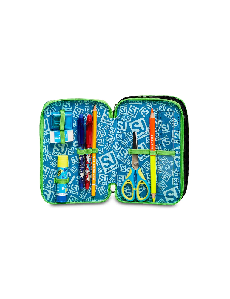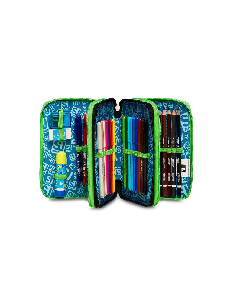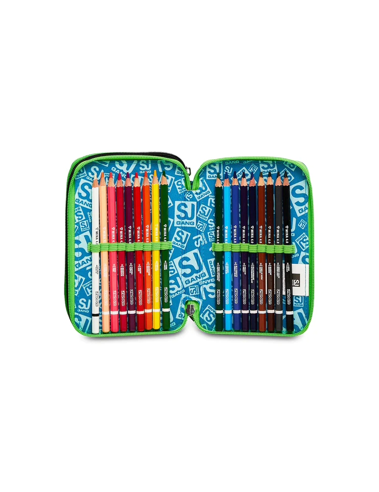 Ciao! Sono il coloratissimo Astuccio 3 zip SJ Gang. Dotato di 3 scomparti completi di tutto il materiale necessario per fare al meglio i tuoi lavori di scuola, abbinami a uno zaino o a un trolley SJ Gang.