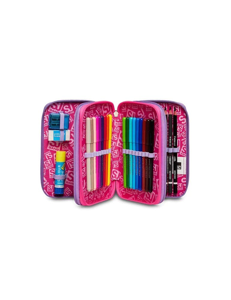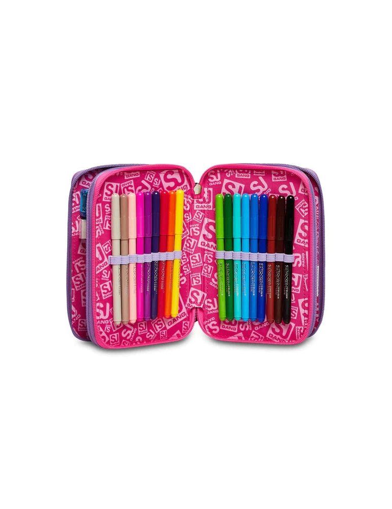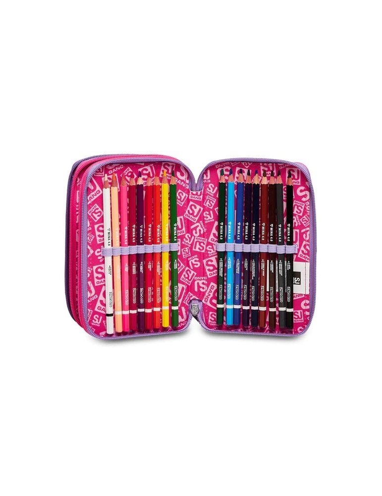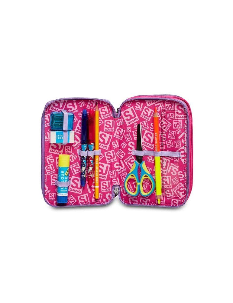Ciao! Sono il coloratissimo Astuccio 3 zip SJ Gang. Dotato di 3 scomparti completi di tutto il materiale necessario per fare al meglio i tuoi lavori di scuola, abbinami a uno zaino o a un trolley SJ Gang.