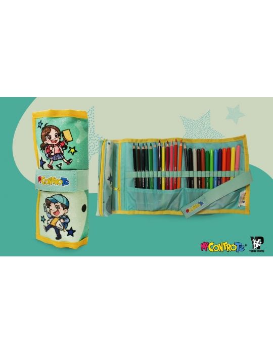 Il rotolo pastelli Me contro te by Young People Ú la soluzione super compatta per avere sempre a disposizione in poco spazio 12pastelli e 12 pennarelli. Realizzato con tessuto super resistente con chiusura con elastico e velcro Il riempimento Ú una super novità costituito da 12 pastelli e 12 pennarelli TintaUNITA dai colori super brillanti con una robustissima mina da 4mm ideale per i nostri piccoli artisti e 1 matita Architetto HB