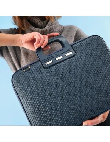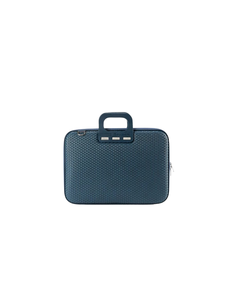La Bombata Trama è un accessorio elegante che si riveste di un sofisticato pattern intrecciato che le dona movimento, tridimensionalità e robustezza. Il rivestimento è impermeabile, mentre il vano interno si compone di cinghie e separatori abbastanza grandi per trasportare in sicurezza documenti e laptop fino a 16”.