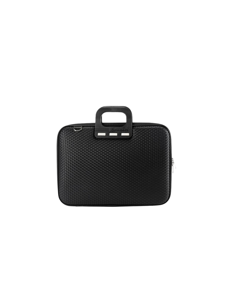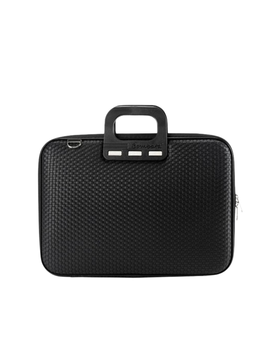 La Bombata Trama è un accessorio elegante che si riveste di un sofisticato pattern intrecciato che le dona movimento, tridimensionalità e robustezza. Il rivestimento è impermeabile, mentre il vano interno si compone di cinghie e separatori abbastanza grandi per trasportare in sicurezza documenti e laptop fino a 15,6”.