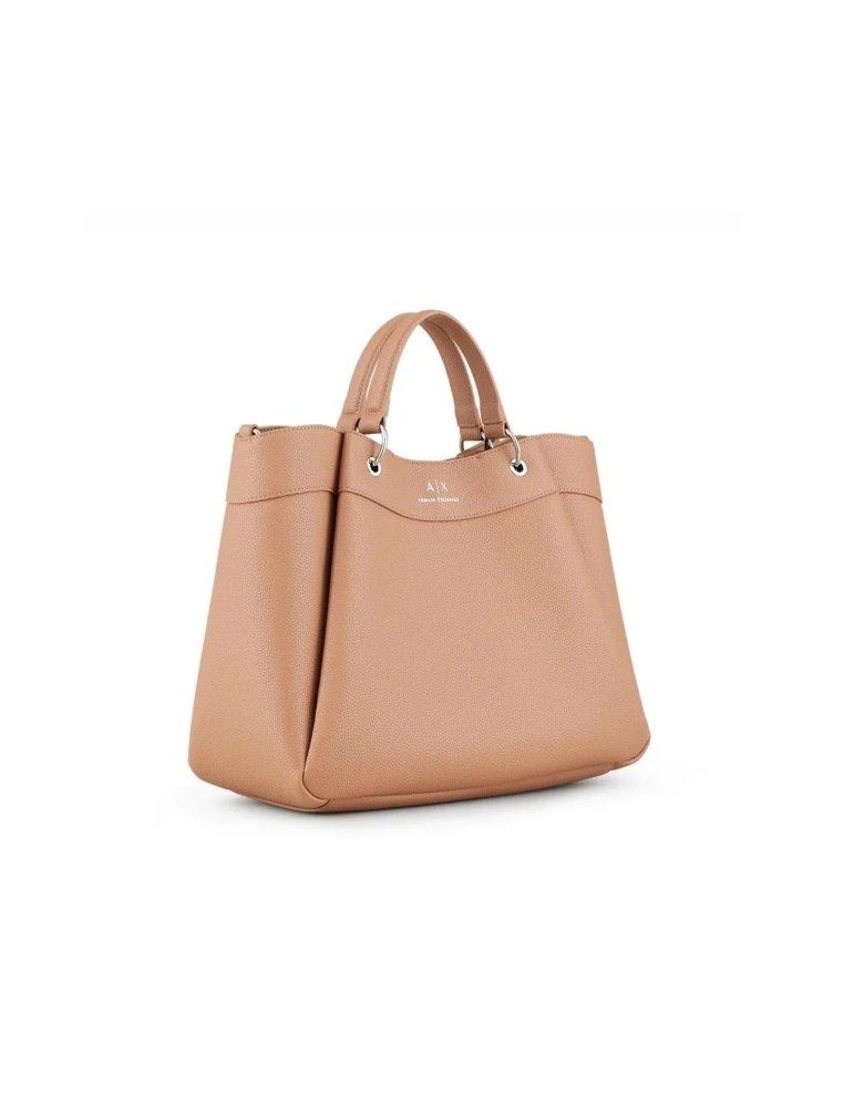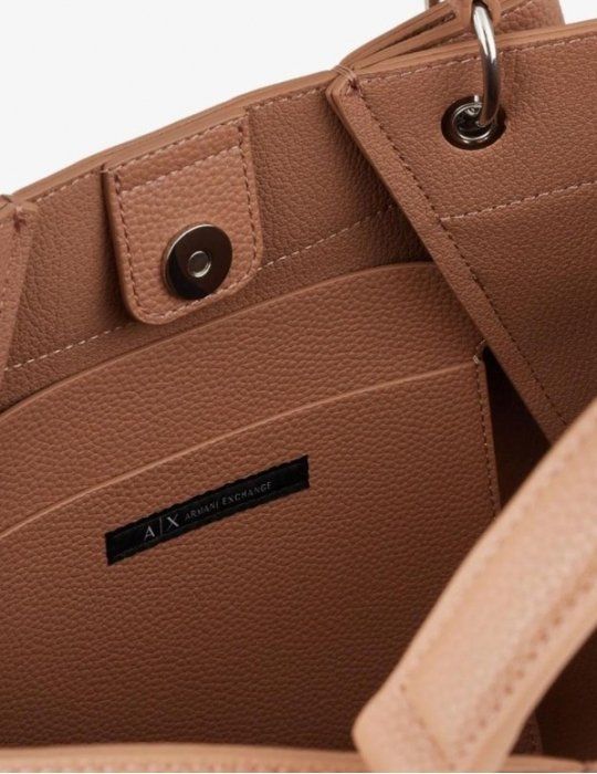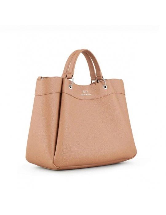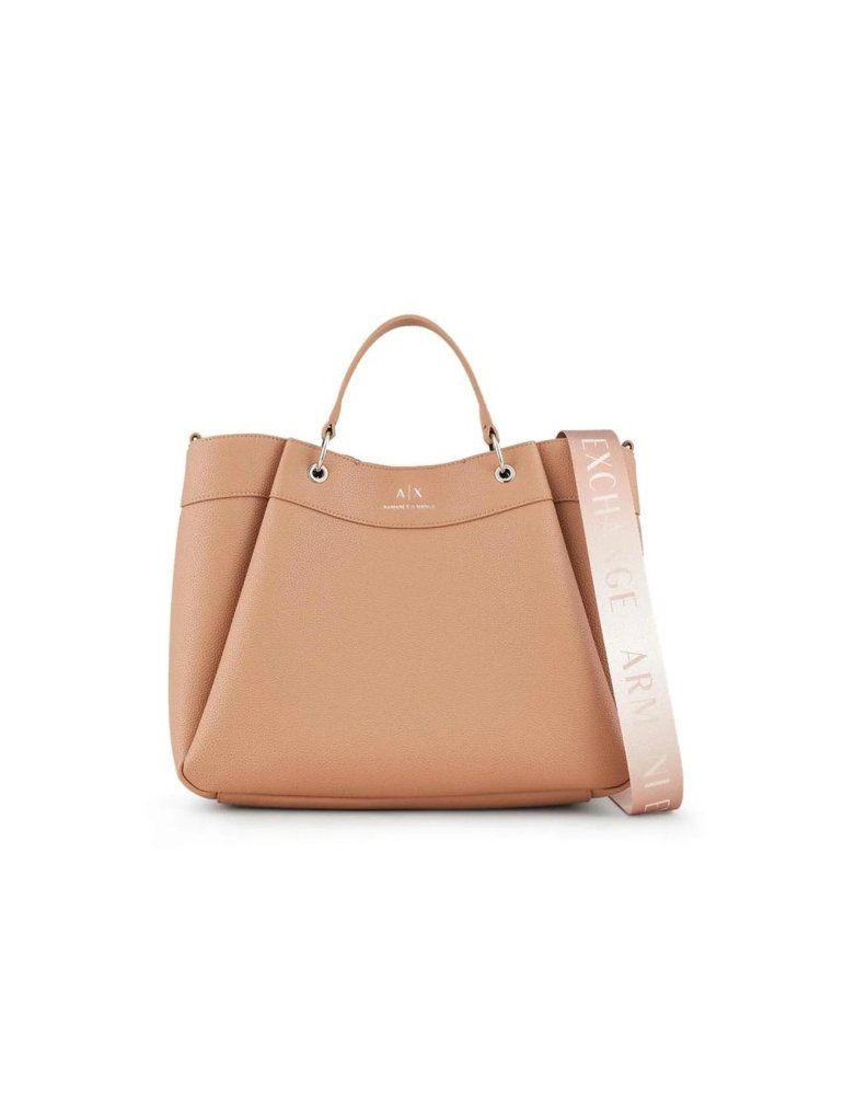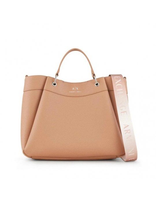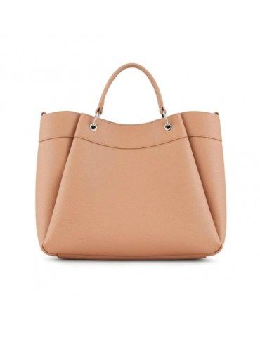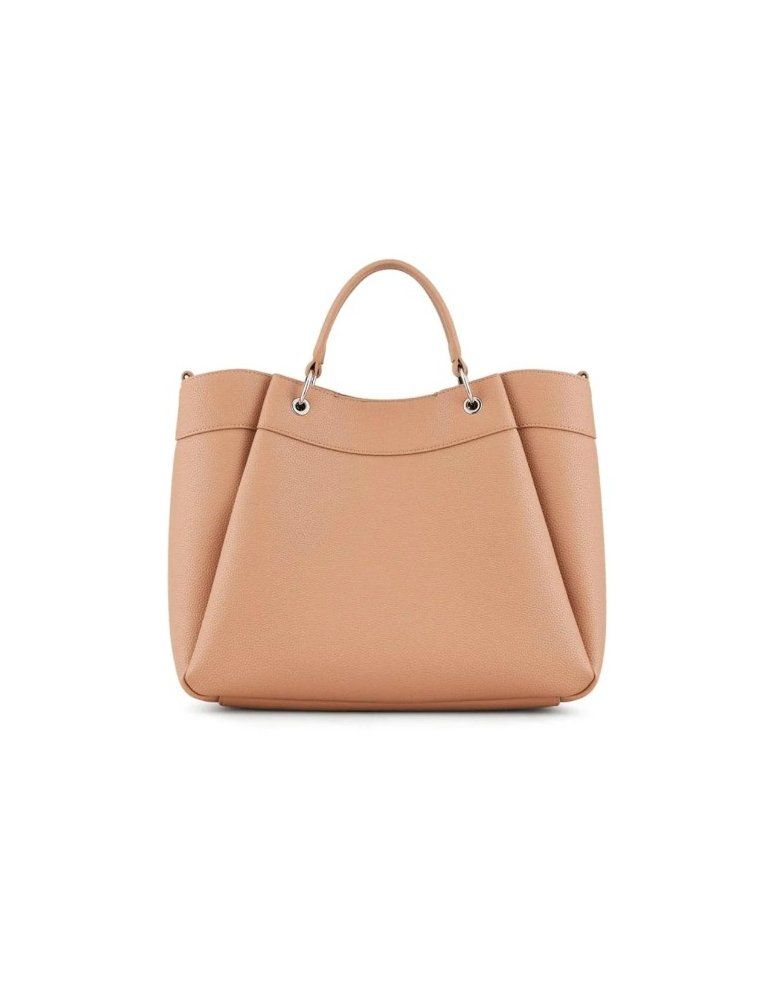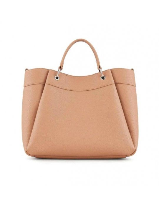 Lavorazione a effetto martellato per la capiente borsa shopper grande con profilo sagomato, doppi manici e pieghe frontali. Una borsa pratica e stilosisssima, personalizzata dalla scritta logo e dalla tracolla a contrasto logata.