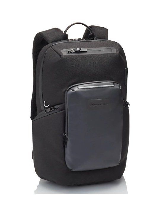 Un connubio di stile e sostenibilità, funzionalità e flessibilità, lavoro e viaggio: la serie Porsche Design Urban Eco è fuori dagli schemi, ma è perfetta per la vita moderna di tutti i giorni. L'elegante zaino Porsche Design Urban Eco S conquista al primo sguardo grazie al suo design tecnico e pulito: poliestere impermeabile con una tasca applicata in tessuto rivestito, chiusure lampo laminate e finiture in metallo nere. A un secondo sguardo, sono i dettagli a catturare l'attenzione: la toppa gommata con il logo, il bordino riflettente e la stampa ispirata al badge dei modelli Porsche con le coordinate di Zell am See, sede dello Studio F. A. Porsche. Il comfort invisibile dello zaino, attentamente progettato, è chiaramente percepibile da chiunque lo indossi. Le cinghie imbottite, lo schienale in neoprene imbottito con aggancio per trolley, la tasca principale con cerniera a doppio cursore, connettore USB e scomparti per notebook e tablet, le numerose tasche funzionali con organizer e la copertura antipioggia nascosta nella base rendono questo zaino il compagno perfetto 24 ore su 24.