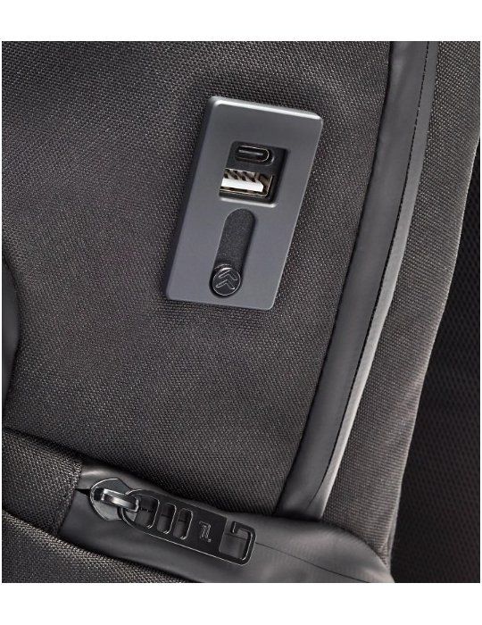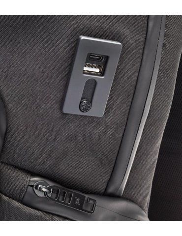 - Tasca principale con scomparto imbottito per notebook fino a 13'', scomparto per tablet e connettore USB.