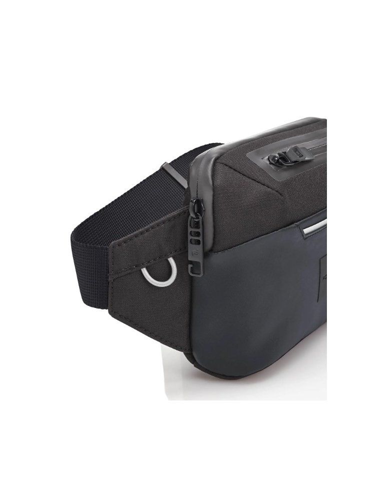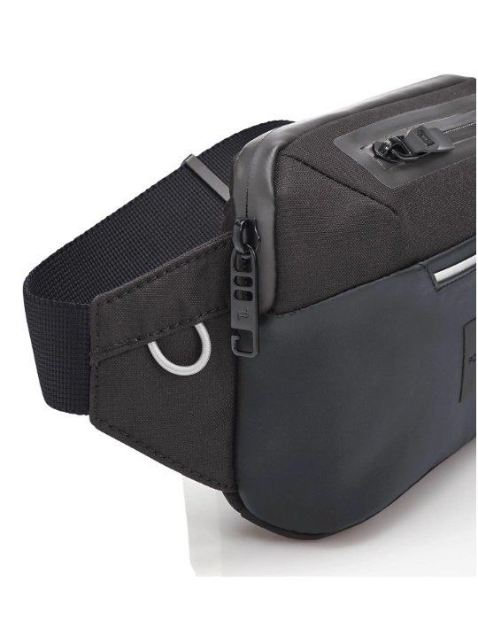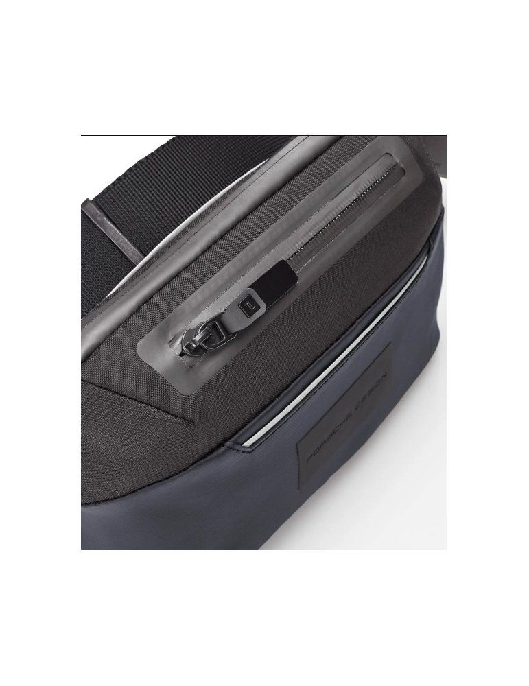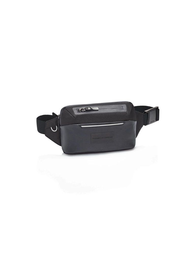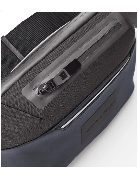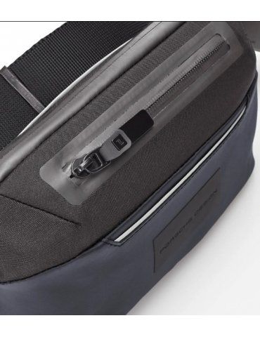 La serie Porsche Design Urban Eco è fuori dagli schemi, ma è perfetta per la vita moderna di tutti i giorni: elegante e sostenibile, funzionale e flessibile. Proprio come il marsupio Porsche Design Urban Eco. Indossato a tracolla o classicamente in vita: Questo marsupio è la prova che funzionalità e stile non sono una questione di taglia. La prima cosa che salta all'occhio è il design pulito. Un'accattivante combinazione di poliestere impermeabile e tessuto rivestito con chiusure lampo laminate, finiture in metallo nere e una toppa gommata con logo. Non immediatamente visibili, ma senza dubbio esclusivi: la fodera PD-Icon con motivo esagonale e la stampa sul retro ispirata ai badge dei modelli Porsche con le coordinate di Zell am See, sede dello Studio F. A. Porsche. Dietro l'aspetto tecnicamente elegante si nasconde una struttura altamente funzionale. A differenza della maggior parte dei marsupi, la fibbia sulla cintura di ispirazione automobilistica è posizionata vicino alla borsa per garantire una facile maneggevolezza, la massima sicurezza e un elevato livello di comfort. La cintura regolabile in lunghezza consente diverse possibilità di trasporto. Anche il design è intelligente: uno scomparto principale con cerniera, una tasca aggiuntiva con cerniera sul davanti, una tasca scorrevole con bordino riflettente sul retro e un anello esterno per una pochette aggiuntiva o un moschettone conferiscono robustezza, ma con stile.
