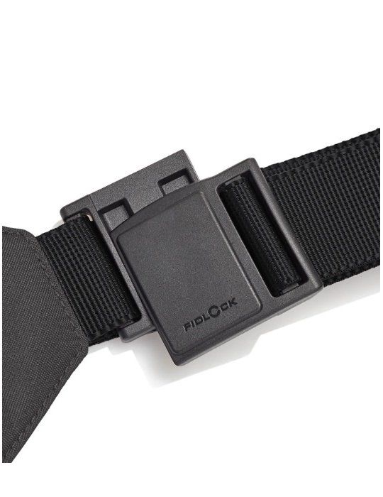 - Tracolla regolabile in lunghezza con fibbia di ispirazione automobilistica.