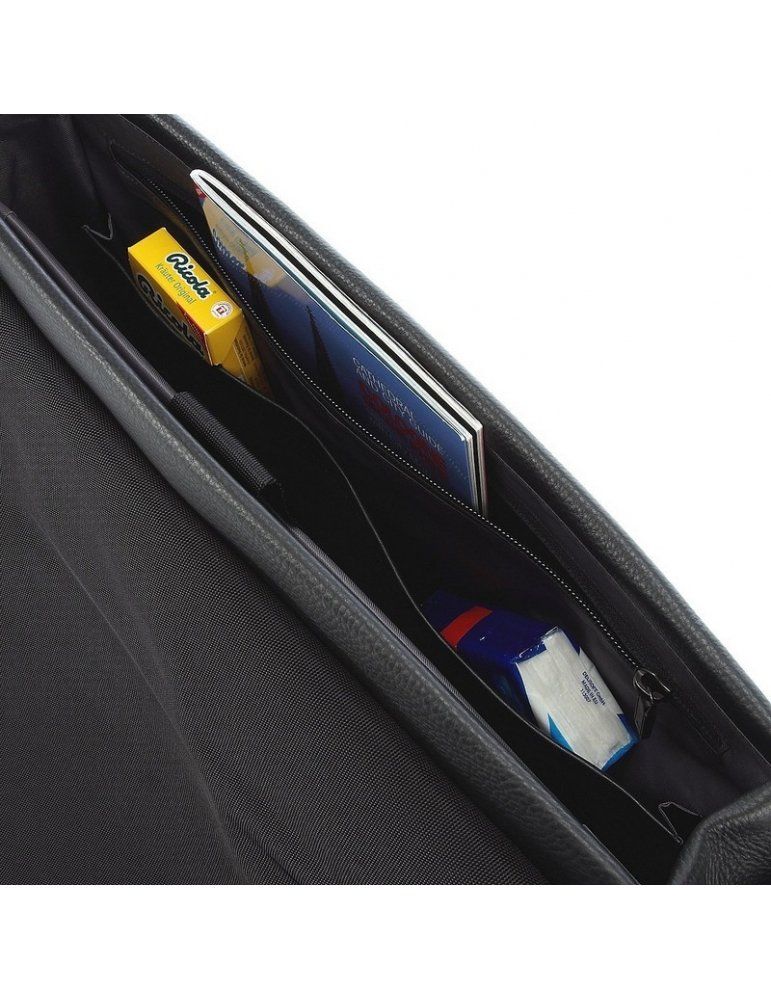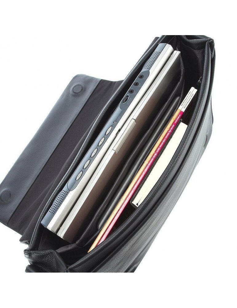 della linea Cervo 2.0, in elegante pelle nera, con tracolla e scomparto per PC fino a 16''