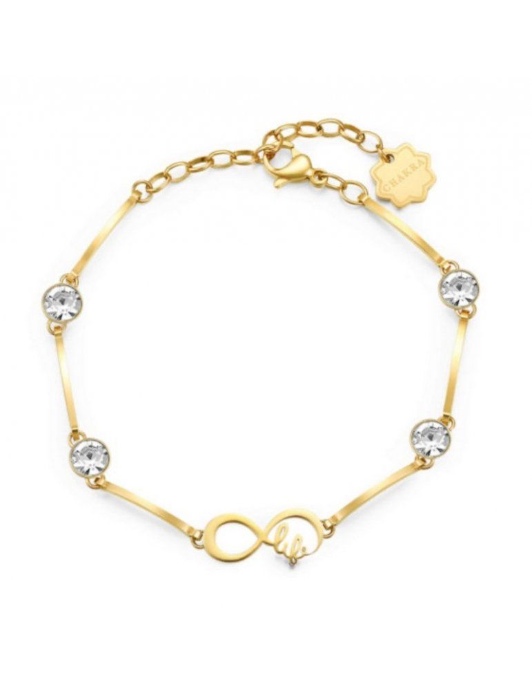 Bracciale in acciaio 316L e finitura oro con infinito e cristalli Swarovski© crystal.