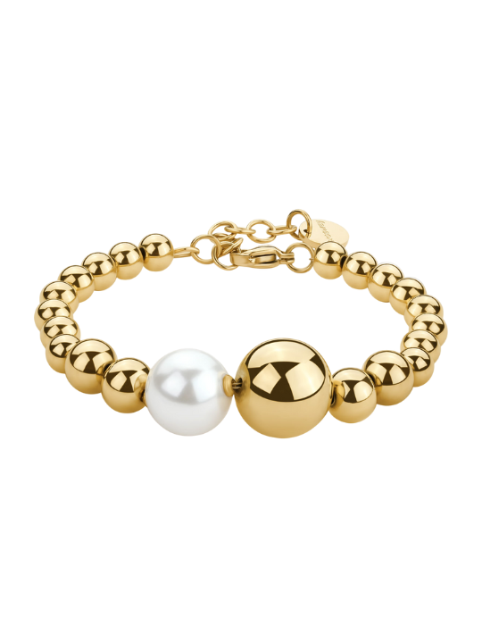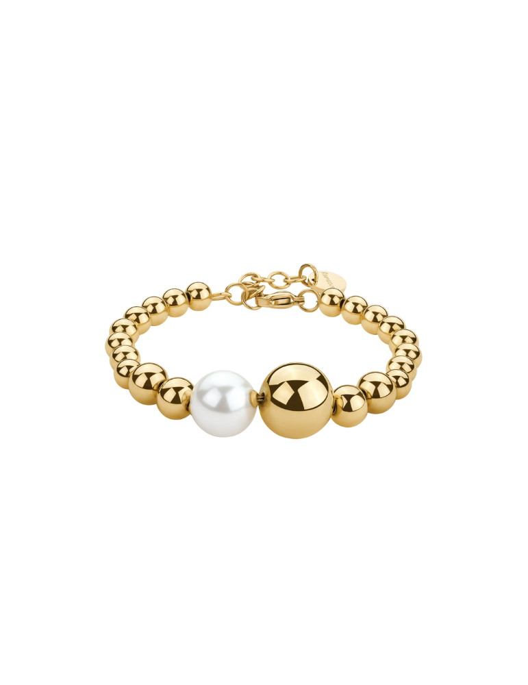 Bracciale in acciaio 316L e finitura pvd oro 14K con perla di conchiglia.