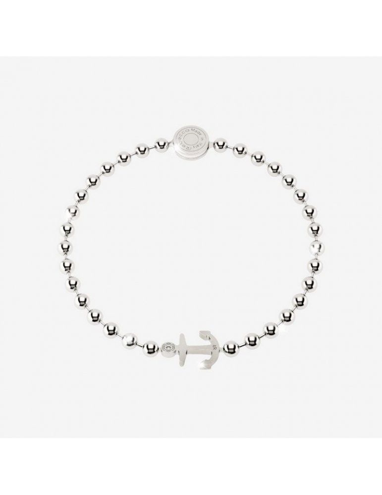 Bracciale da uomo in argento placcato rodio, sfere in argento e simbolo centrale di un'ancora