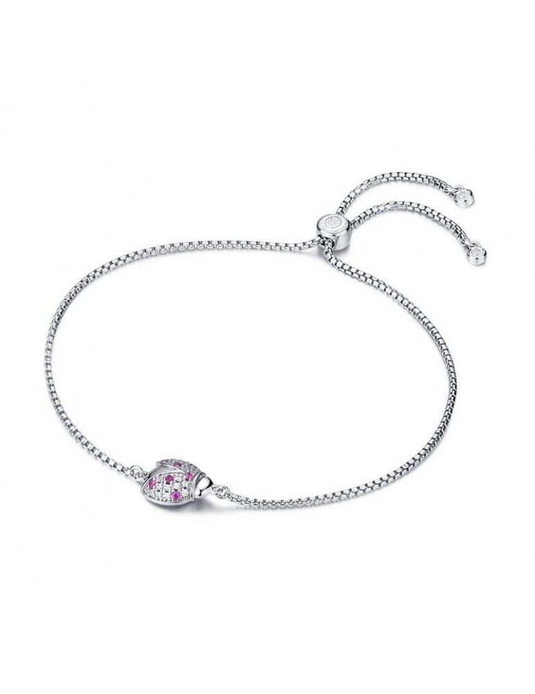 Bracciale da donna della serie Sogni, in argento 925 con coccinella con zirconi bianchi e rossi. Chiusura a scorrimento. Peso: 4,20 g.