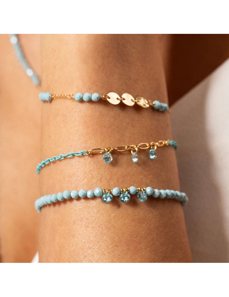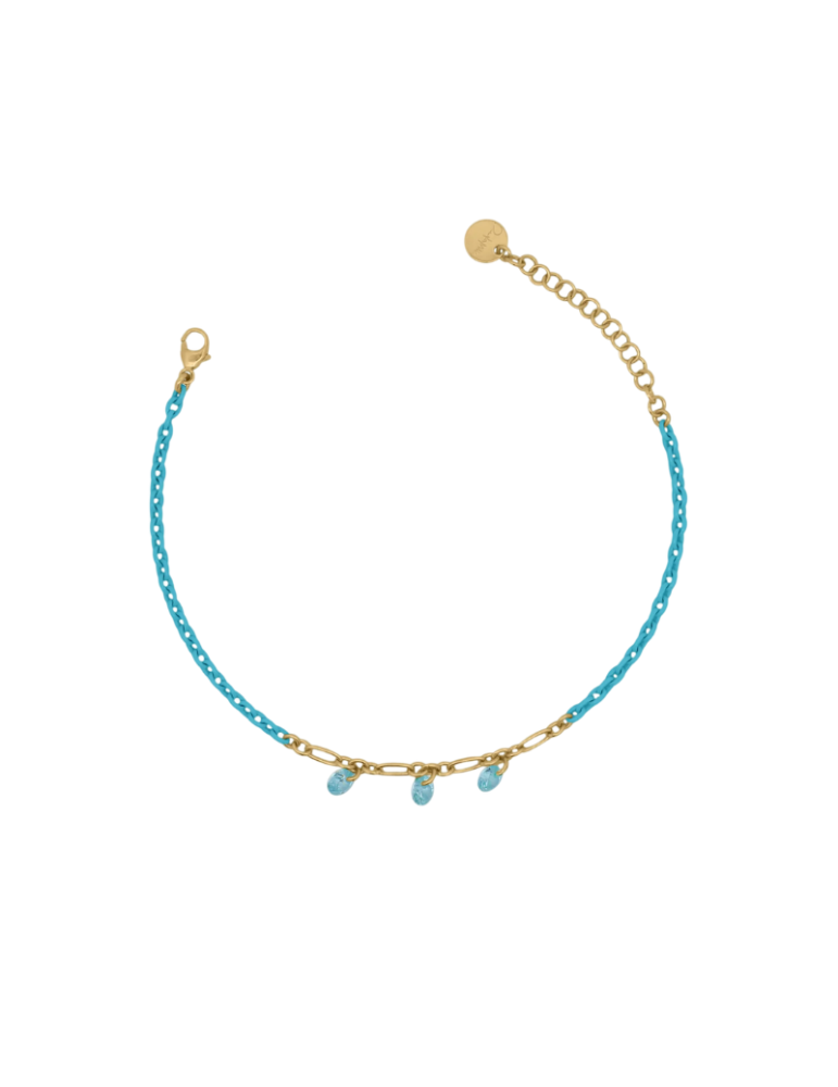 Dalla collezione Gipsy Chic, un braccialetto dal carattere deciso e vibrante. Realizzato in argento 925 riciclato, presenta una catena verniciata con finitura ultra resistente, pensata per accompagnarti ogni giorno con stile. Al centro, tre zirconi milky nudi donano luce e movimento al design. Un gioiello perfetto per chi ama mixare energia boho e dettagli moderni, da indossare da solo o insieme ad altri bracciali Rue des Mille per un look personalizzato.