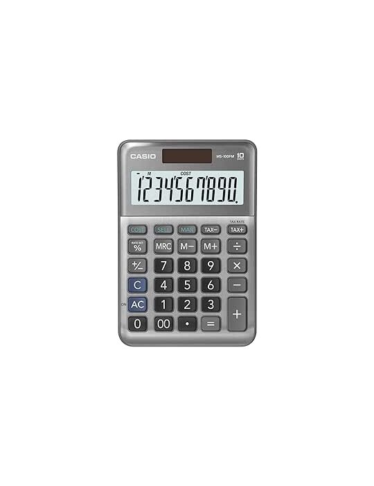 CASIO MS-100FM Calcolatrice da tavolo a 10 cifre, frontale in metallo, tassa, costo/vendita/margine