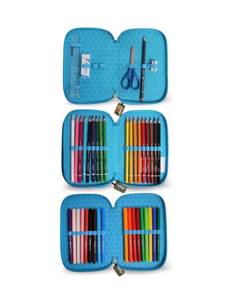 Astuccio monocerniera in EVA. Tasca interna in rete e 3 divisori interni accessoriati. Tirazip in microiniezione.