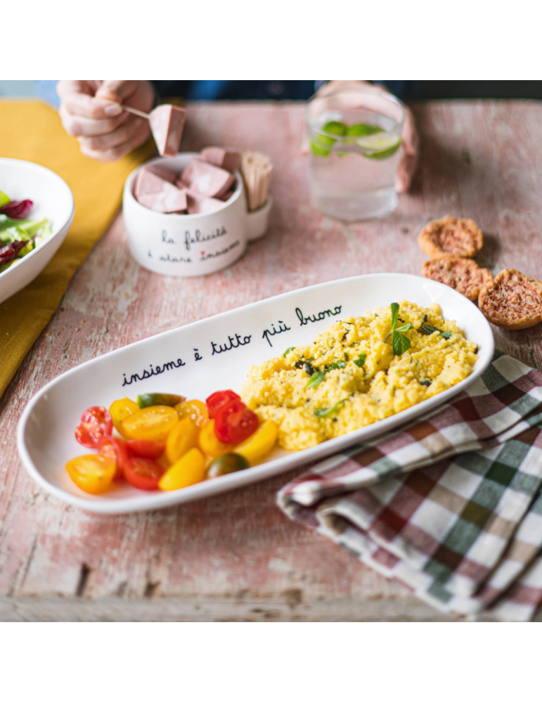 Piatto ovale fondo in gres decoro Insieme è tutto più buono 34.2 x 16 x H 3.7 cm