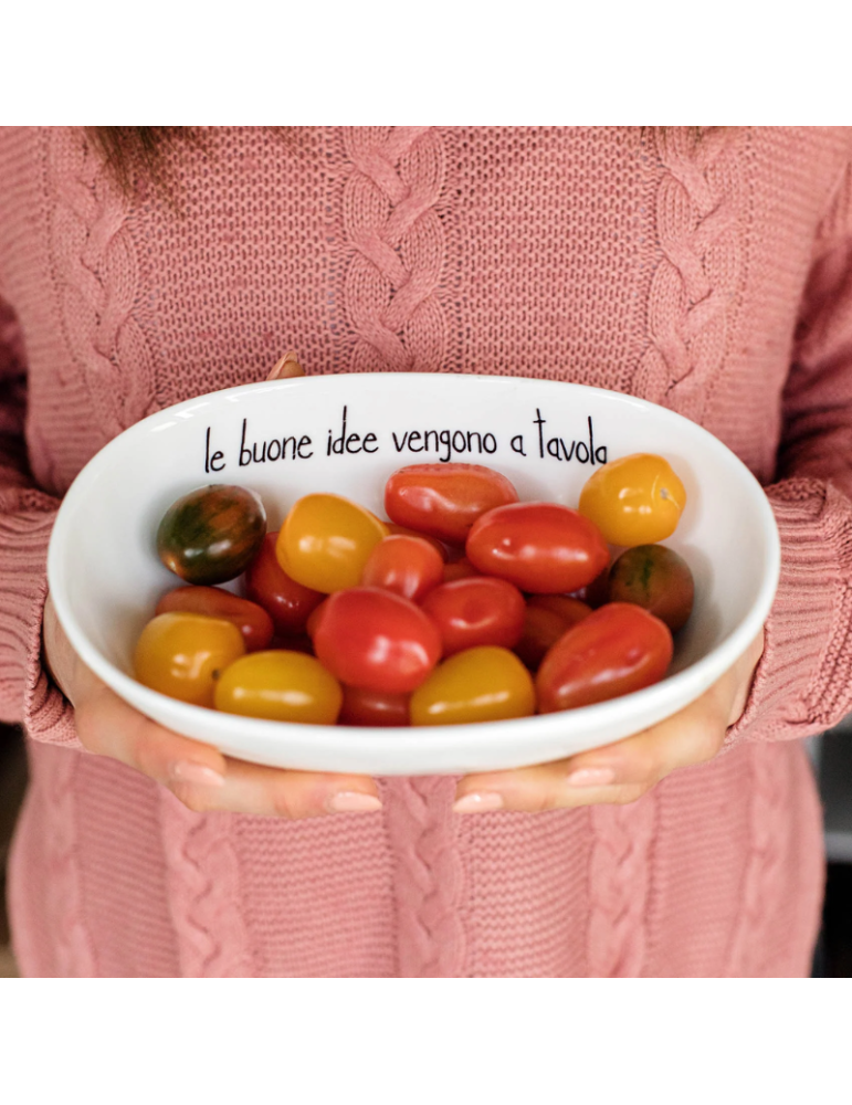 Coppetta ovale in gres decoro Le buone idee vengono a tavola, 20 x 13.5 x h 6 cm