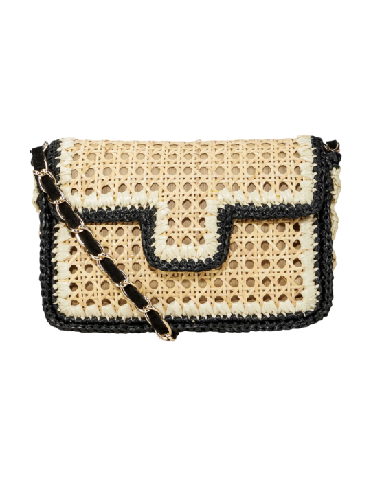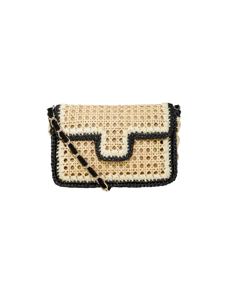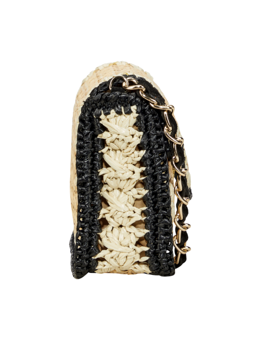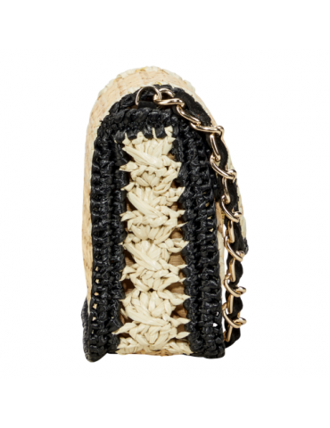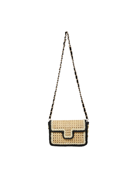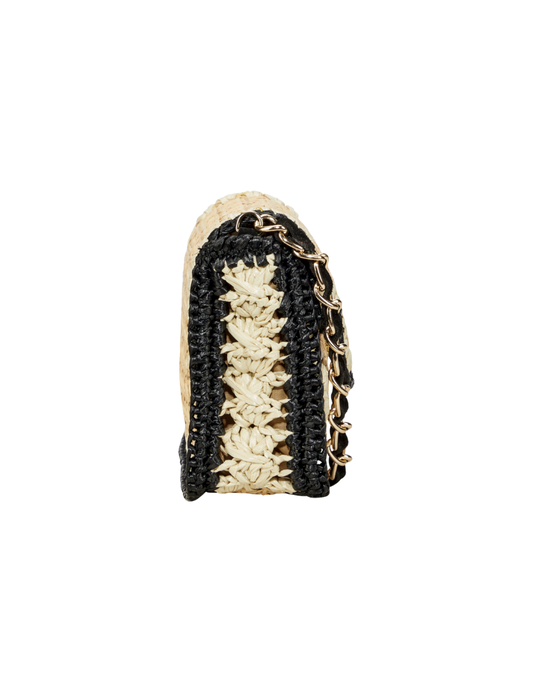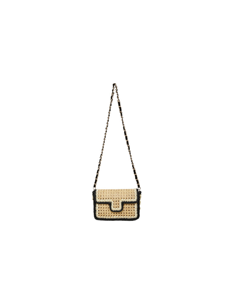 Borsa a tracolla di Caterina Bertini nei colori naturale e nero. Made in Italy - Fondata nel 1925, l'azienda si è specializzata in prodotti intrecciati e oggi si distingue per la sua lavorazione artigianale di alta qualità, che rende ogni modello unico. Questa borsa si ispira al caratteristico intreccio viennese, mentre la tracolla a catena dona il tocco finale.