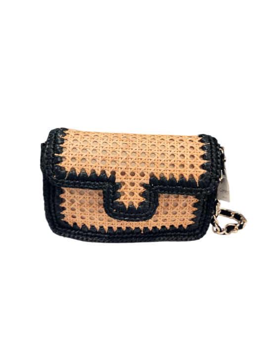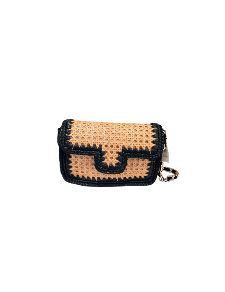 Borsa a tracolla di Caterina Bertini nei colori naturale e nero. Made in Italy - Fondata nel 1925, l'azienda si è specializzata in prodotti intrecciati e oggi si distingue per la sua lavorazione artigianale di alta qualità, che rende ogni modello unico. Questa borsa si ispira al caratteristico intreccio viennese, mentre la tracolla a catena dona il tocco finale.