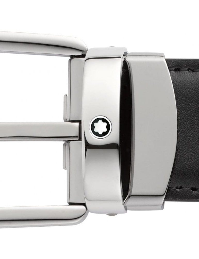 Cintura reversibile Montblanc in pelle nera/marrone 30 mm con fibbia a ferro di cavallo