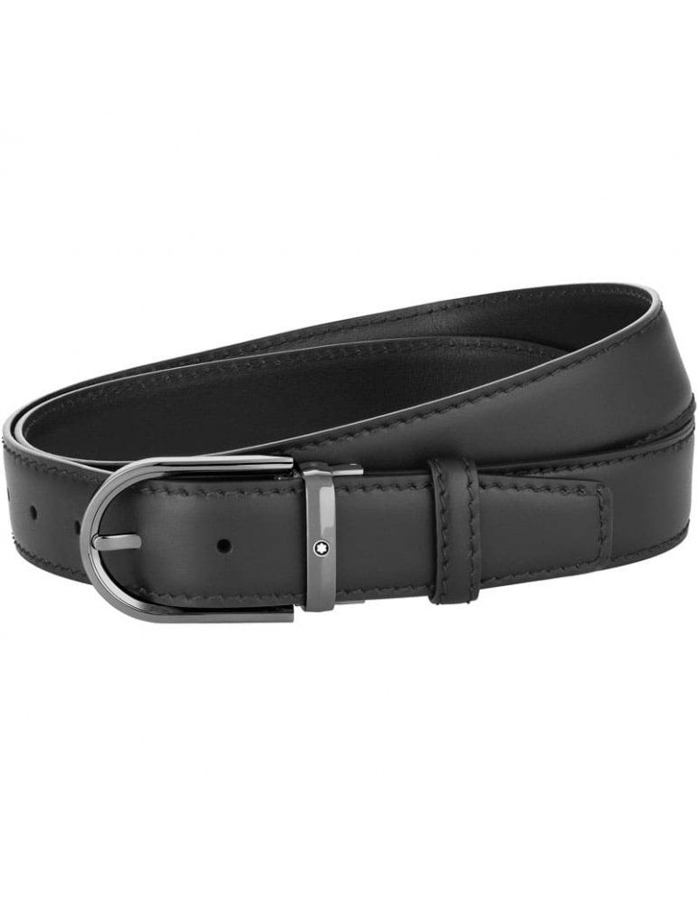 Cintura in pelle nera Montblanc 35 mm con fibbia a ferro di cavallo | Montblanc