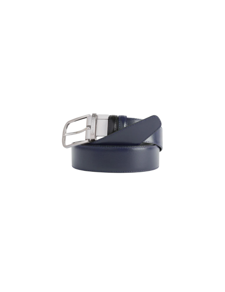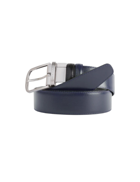 Cintura Piquadro in Pelle Nera/Blu Reversibile