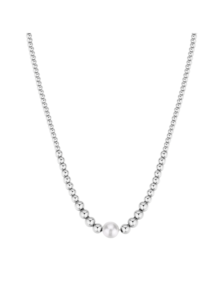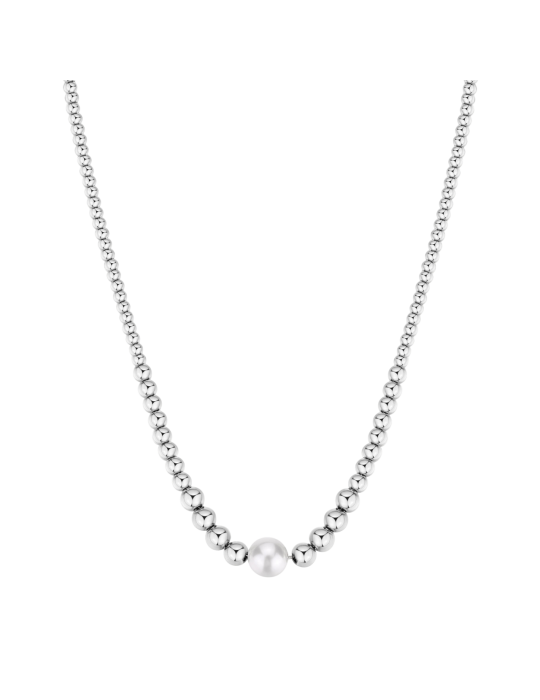 Collana a sfere in acciaio 316L e perla di conchiglia.