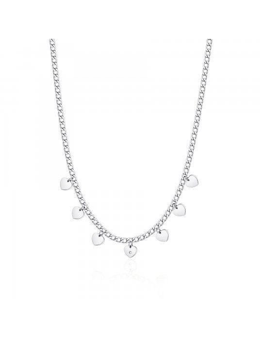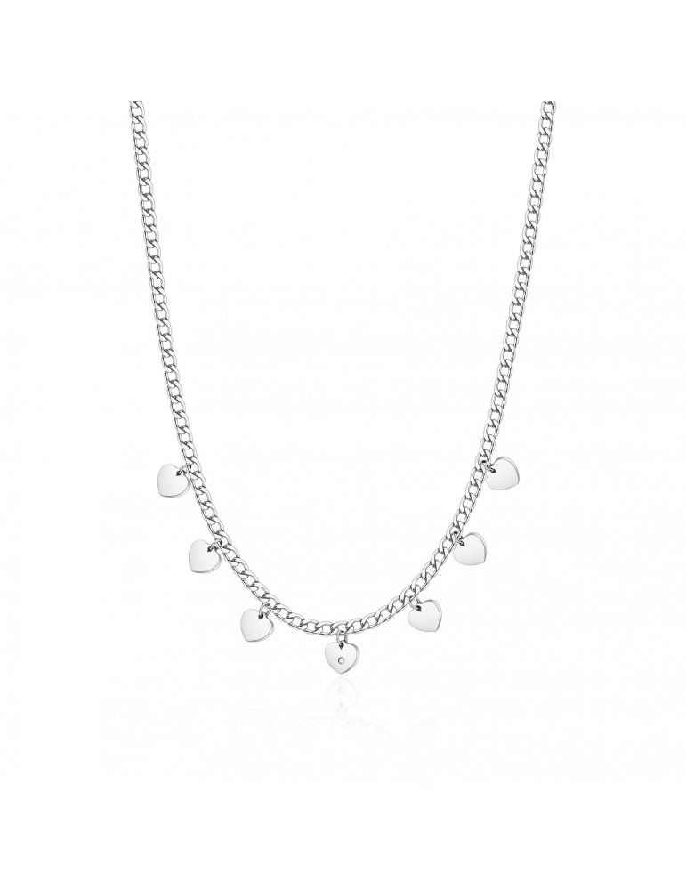 Collana catena grumetta in acciaio 316L con pendenti a forma di cuore e cristallo crystal.