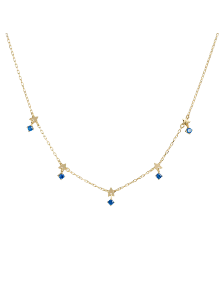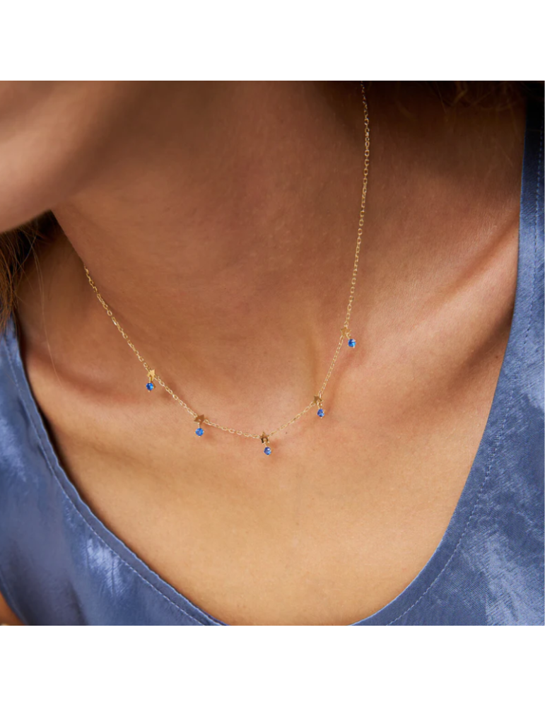 Girocollo con 5 stelle a lastra e castoni pendenti con zirconi blu