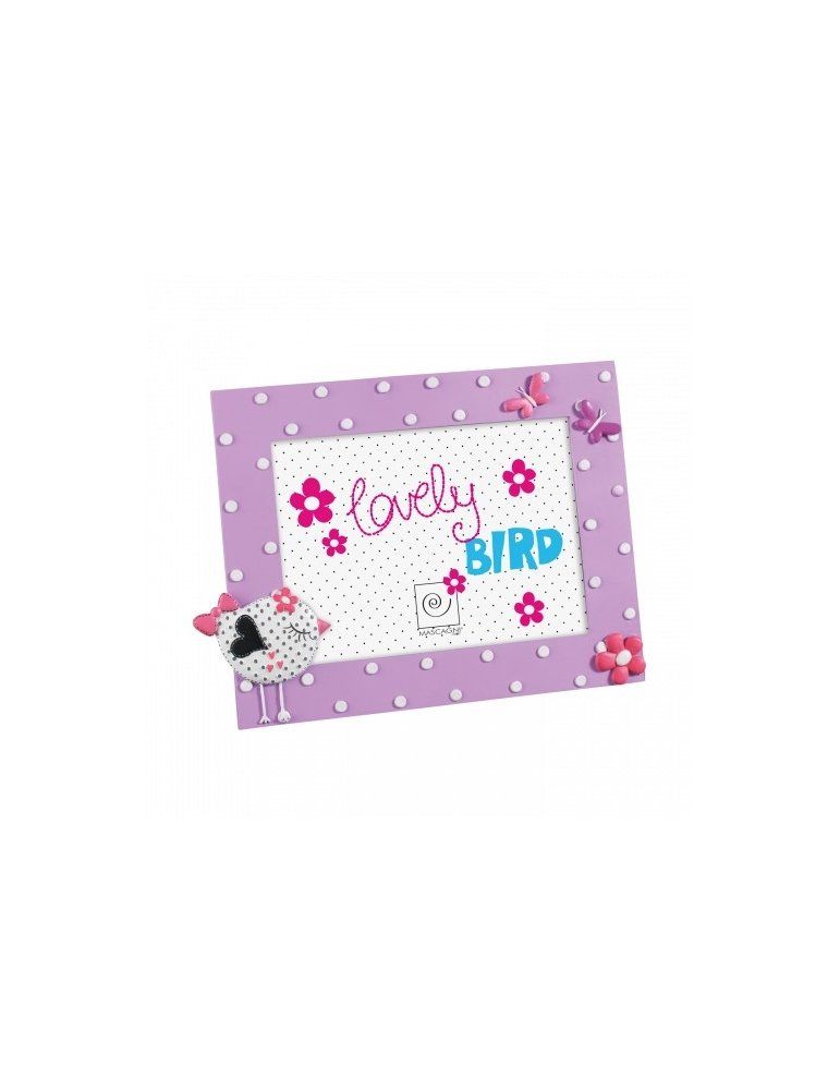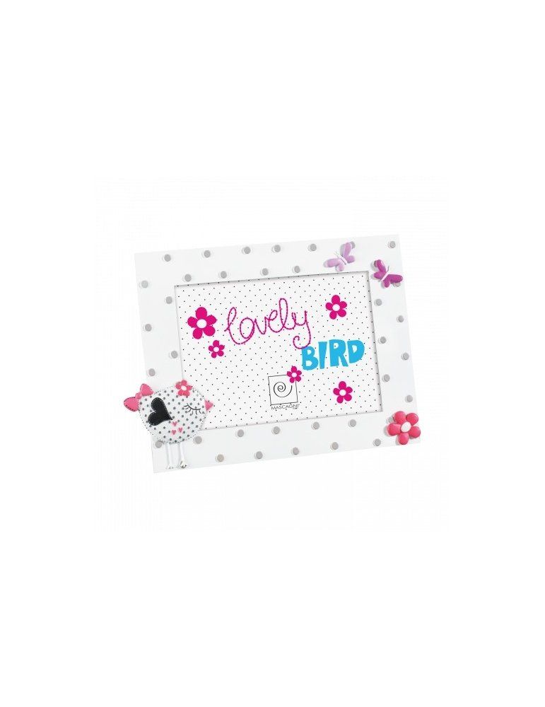 Portafoto in resina 'birds' con decorazioni in resina su piu' livelli su texture pois.