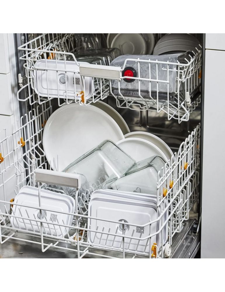 - Funzione sottovuoto: i cibi si mantengono freschi fino a cinque volte più a lungo rispetto ai normali sistemi di conservazione senza sottovuoto. Gli aromi e le sostanze nutritive vengono conservati in sicurezza, riducendo gli sprechi di cibo