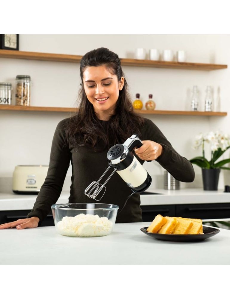 Elegante Sbattitore Elettrico Retrò con fruste per montare e ganci per impastare, 6 diverse velocità per soddisfare tutte le vostre esigenze.
