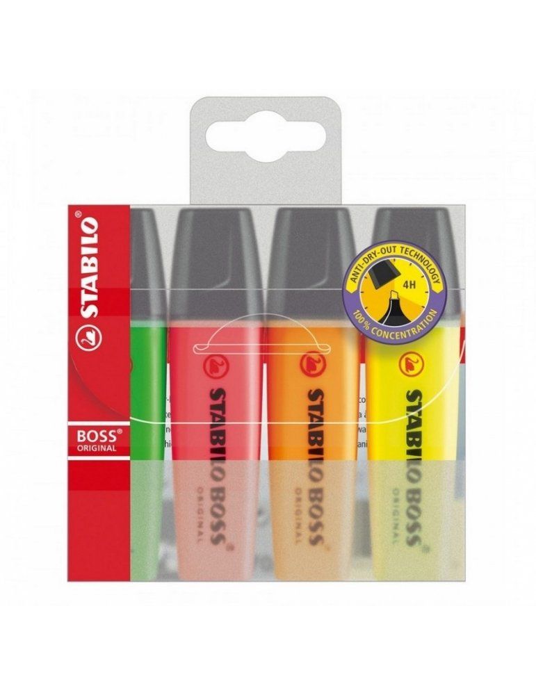 Evidenziatore Stabilo Boss in confezione da 4 colori assortiti.