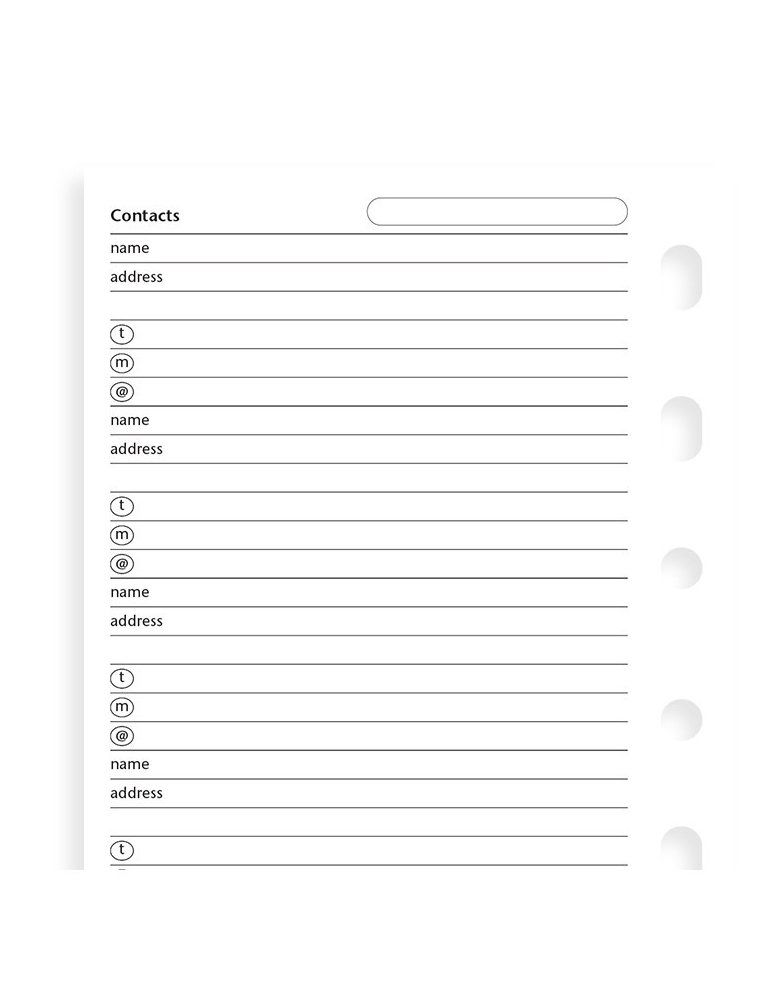 per gli organizer formato Pocket (tascabile), con fogli a doppia colonna per registrare i tuoi contatti