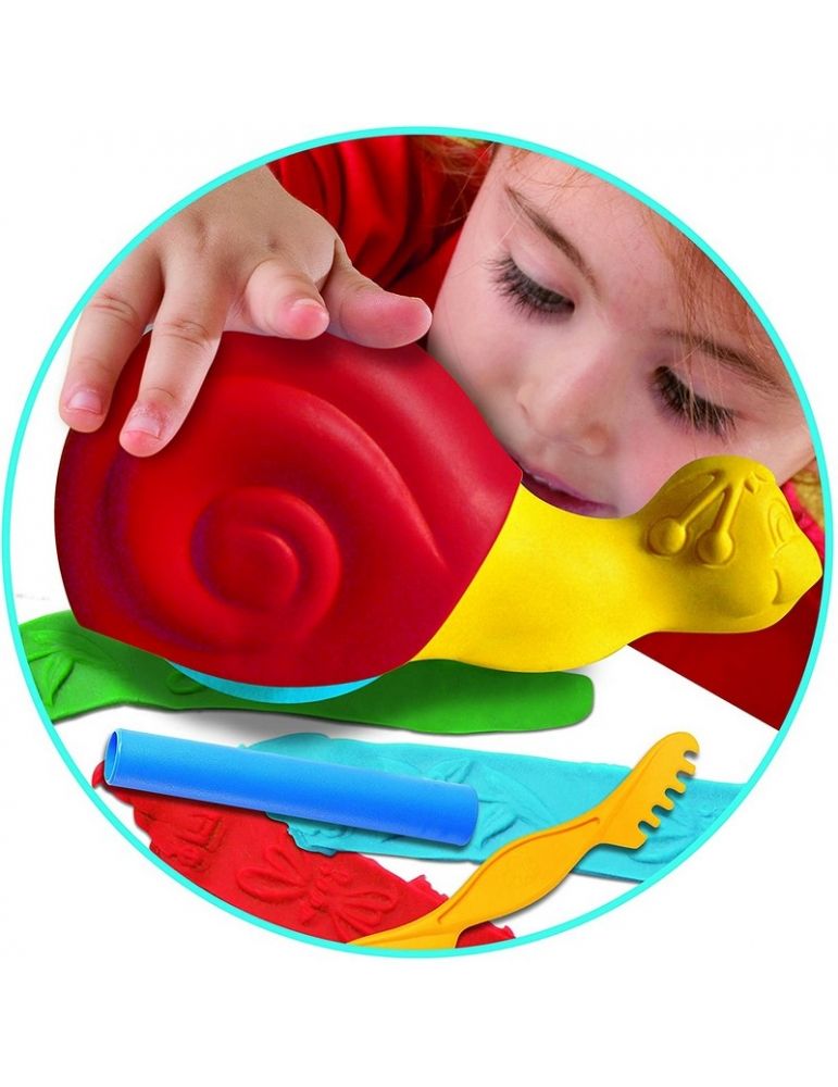 My Snail, con 4 confezioni di pasta modellante colorata, rullo, cutter in plastica e stampino a forma di lumaca