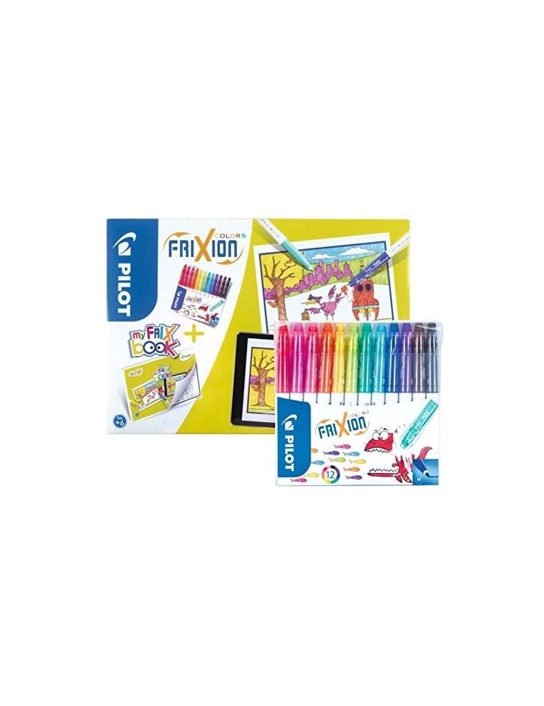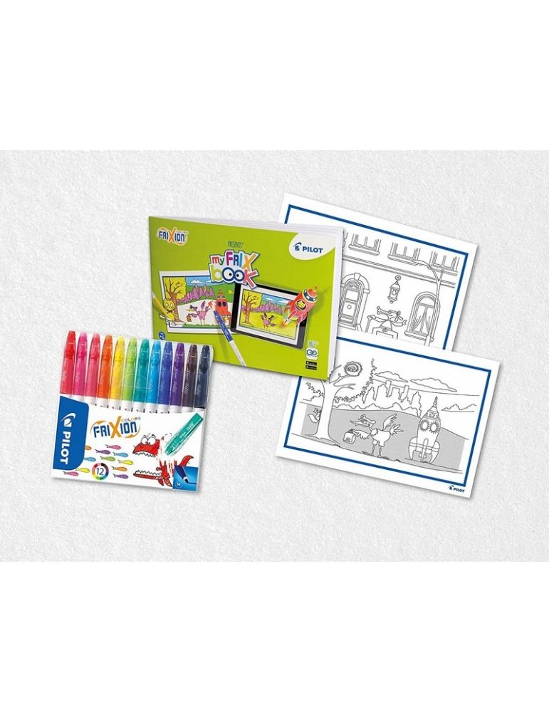 - Set esclusivo Pilot Frixion che comprende una confezione da 12 pennarelli cancellabili e un album da colorare