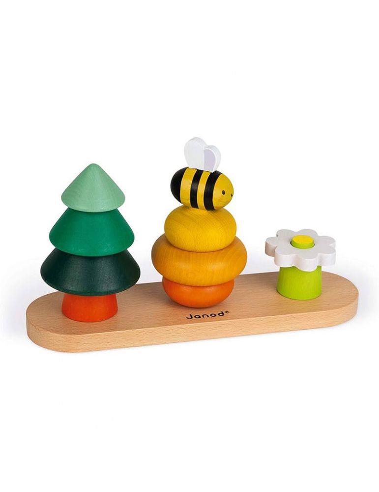 Stai cercando un gioco prima infanzia per il tuo bambino, per scoprire la manipolazione attraverso elementi adatti alla sua età? Con questo gioco di costruzioni pensato per i più piccoli, è possibile impilare gli elementi e ricostruire una graziosa scenetta in ambiente naturale, su tre livelli. A partire dai 12 mesi di età, il tuo bambino può divertirsi sovrapponendo i 10 pezzi di legno che compongono questo gioco educativo e ricostruire un albero, un alveare, la sua ape e un fiore! Questo gioco, dipinto con colori a base d'acqua, permetterà al bambino di sviluppare la sua coordinazione occhio-mano e la sua abilità manuale. Giocattolo in legno massello certificato FSC® (proveniente da foreste gestite in modo sostenibile). Lo sapevi? Le api devono prelevare il polline da 2 a 3 milioni di fiori per produrre 1 kg di miele! Gioco sviluppato in collaborazione con il WWF®™. Janod sostiene l’impegno del WWF®™ nella protezione dell'ambiente e della biodiversità attraverso una nuova serie di giocattoli prodotti con materiali più sostenibili. Attraverso questa linea vogliamo ispirare le generazioni più giovani e permettere loro di attivarsi in favore della fauna e della natura.