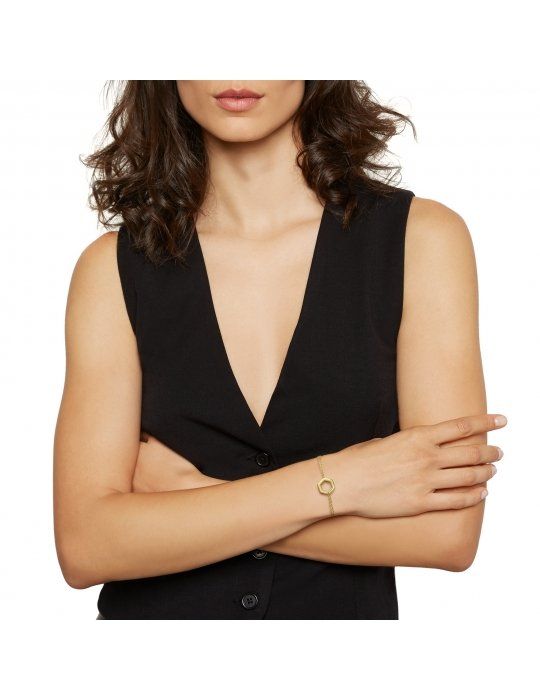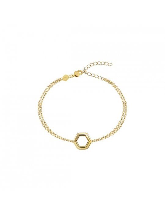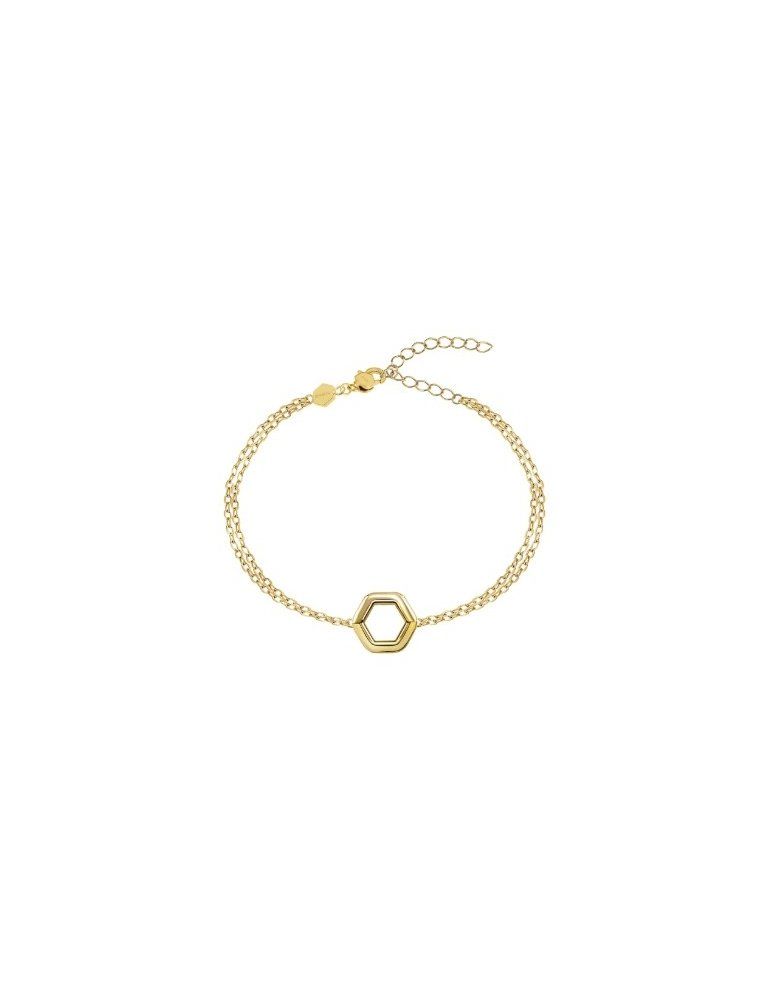 Il bracciale da donna Hexagonia è un concentrato di semplicità e coolness. In perfetta tendenza easy chic, è caratterizzato da una doppia catenina in acciaio color oro sottile e raffinata, abbinata a un elemento centrale di forma esagonale leggermente bombato. La chiusura regolabile permette di modificare facilmente la misura del bracciale.
