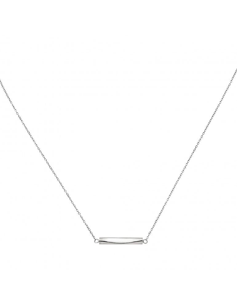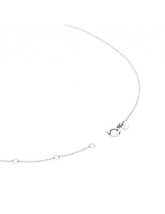 La collana girocollo Flow in acciaio è sottile e discreta, ma veste perfettamente il décolleté illuminandolo in maniera elegante. Al centro della catena in acciaio lucido è presente un pendente dal design originale Breil, sempre in acciaio ma con finitura bilux lucida e satinata. La chiusura regolabile permette di modificare facilmente la misura della collana.