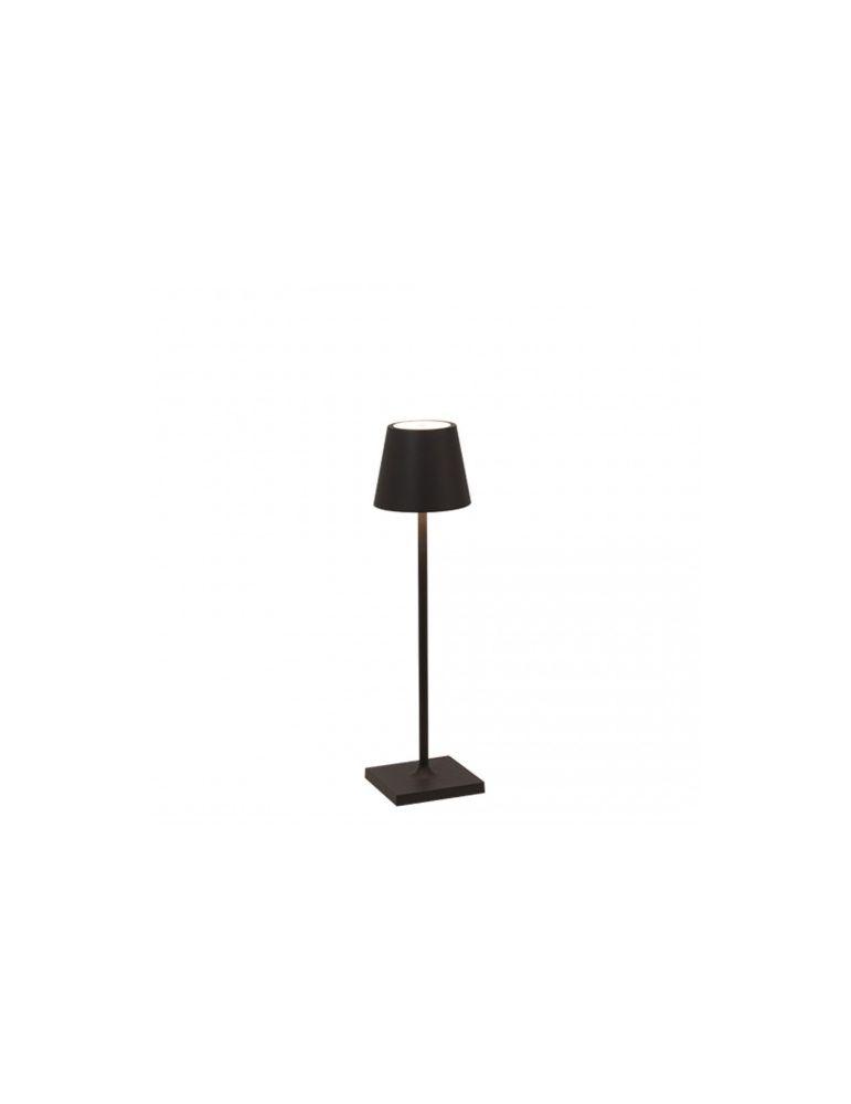 Lampada ricaricabile da tavolo, compresa di base di ricarica a contatto, con corpo in alluminio verniciato, diffusore in policarbonato e fonte luminosa a LED.
