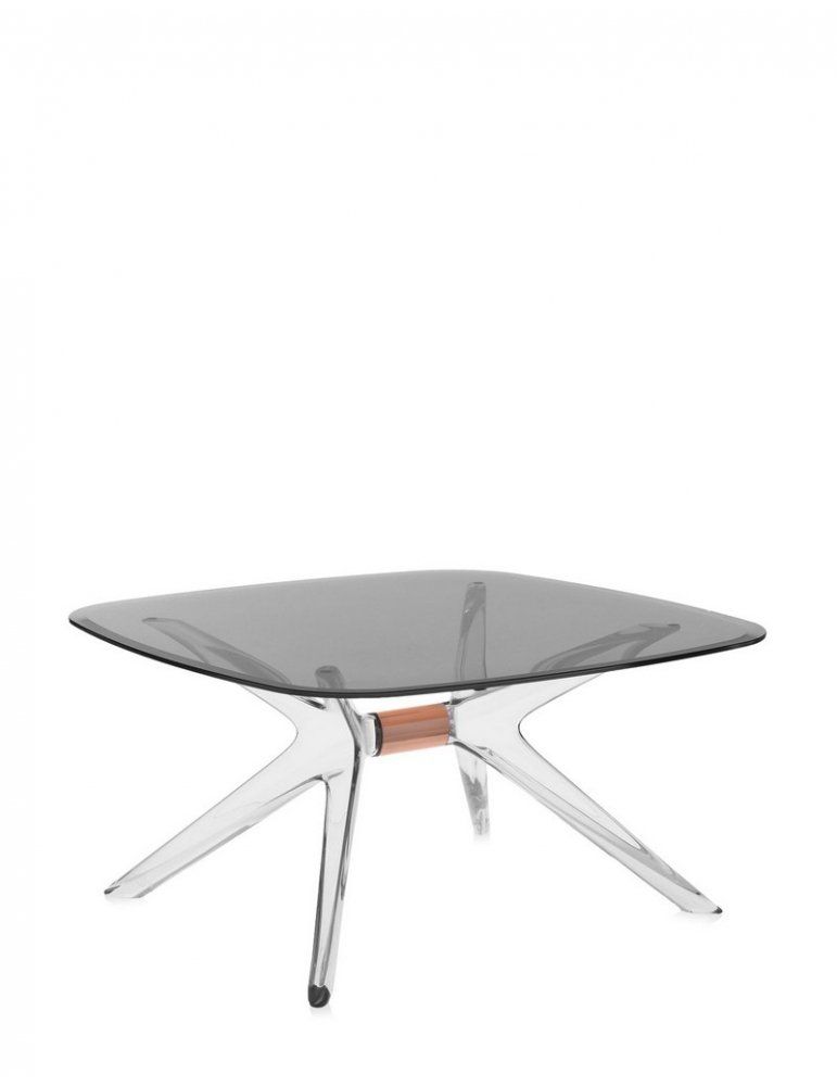 La proposta lifestyle Kartell si arricchisce per la zona living di Blast di Philippe Starck, che propone una tipologia di side-table con base e piano trasparente, il cui design è uno sviluppo del tavolo Sir Gio, con la possibilità dunque di associare e combinare colori diversi di basi e piani. Il nucleo centrale della base può essere cromato o rame metallizzato.