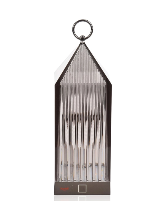 Lantern di Fabio Novembre è un’originale lampada a led portatile, una “lanterna ricaricabile” trasparente, stampata a iniezione, che si ricarica appoggiandosi a una base conduttrice. La luce viene proiettata grazie a un effetto grafico del design.