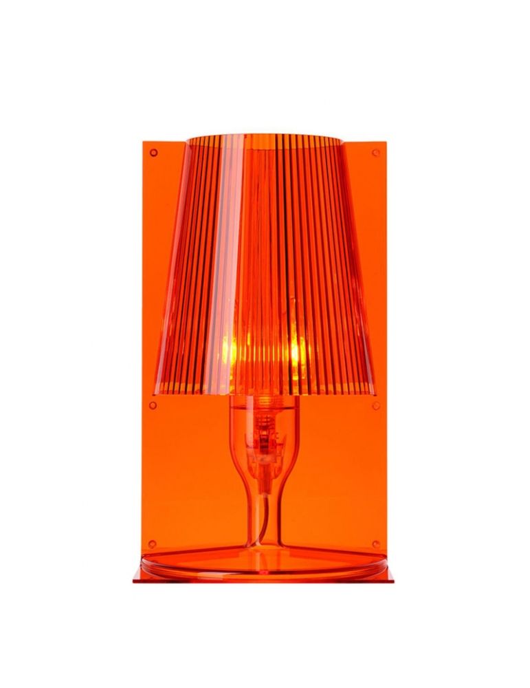 L'iconica lampada Take della Kartell in policarbonato trasparente arancione