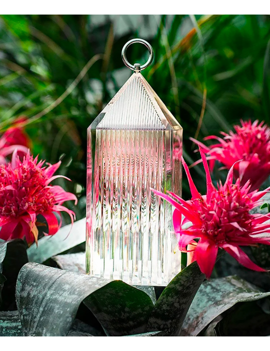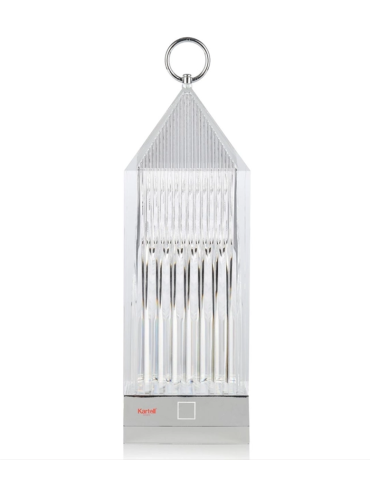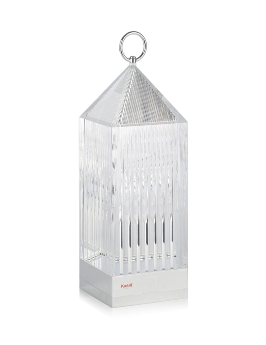 Lantern di Fabio Novembre è un’originale lampada a led portatile, una “lanterna ricaricabile” trasparente, stampata a iniezione, che si ricarica appoggiandosi a una base conduttrice. La luce viene proiettata grazie a un effetto grafico del design.