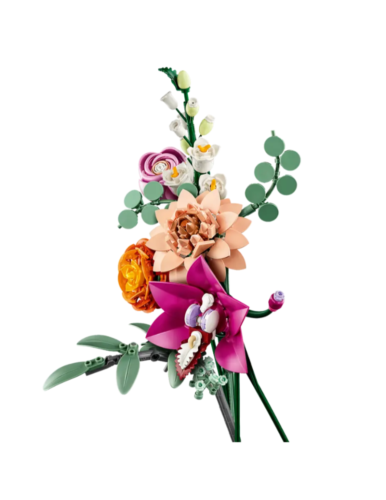 I fioristi in erba possono rilassarsi mentre costruiscono il bouquet, composto da 15 steli di fiori LEGO, tra cui margherite, fiordalisi, eucalipto, fiori di sambuco, rose, ranuncoli, orchidee cymbidium, una dalia waterlily e una campanula. Tutti gli steli sono regolabili, incoraggiando i costruttori a creare un bouquet su misura da utilizzare come decorazione floreale per la casa o l’ufficio. Per una maggiore personalizzazione, i fiori possono essere disposti con altri bouquet LEGO, disponibili separatamente, per creare un display floreale più grande e unico.